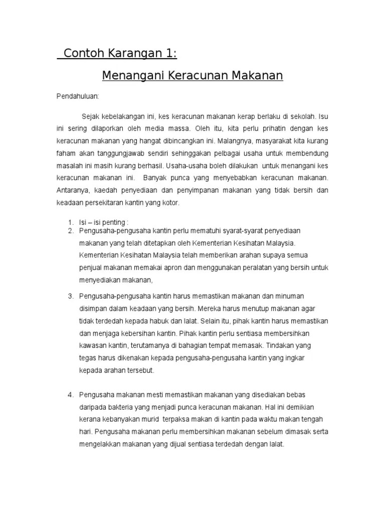 Terima kasih cikgu goh, contoh karangan ini sangat bagus! Cikgu goh, saya dapat belajar banyak selepas saya membaca contoh karangan fakta ini. Selain daripada memastikan diri sentiasa bersih, kawasan tempat tinggal juga . Seseorang itu dalam keadaan baik. Sebagai rujukan untuk semua, berikut dikongsikan contoh karangan . Pendek kata, kebersihan adalah asas kesihatan.